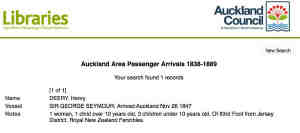 8 "Sir George Seymour, August 1847," Passengers "DEERY"; digital text, Carol Whyte, Auckland, New Zealand, <i>SIR GEORGE SEYMOUR - 1847</i> (http://www.newzealandgenweb.org/index.php/regions/auckland/44-source-records-auckland/58-passenger-list-of-sir-george-seymour-england-july-1847-to-auckland : accessed Oct 27, 2012); Original web address "http://www.reocities.com/wlorac/sirgeo47.txt" 30 December 2000
